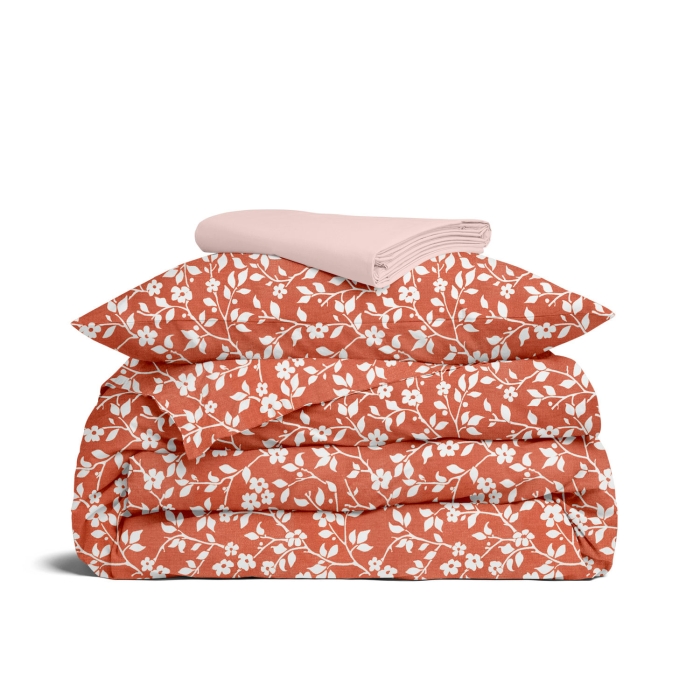 Schnellsuche , квіти, квітки, квіточки, природа, Теракотовий, Квіти, Ранфорс, 160х220 см, Підліткова постіль з простирадлом на резинці FLORET