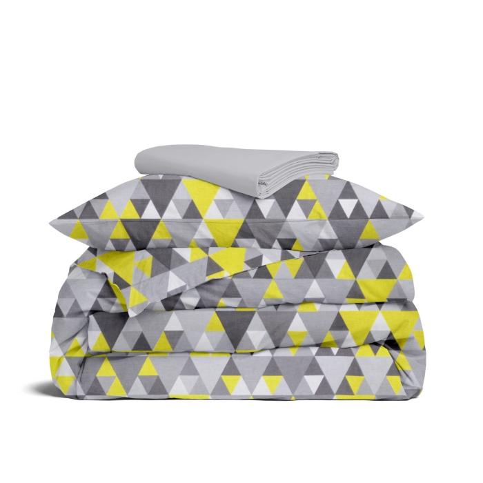 Schnellsuche , , Сірий, Геометрія, Ранфорс, 160х220 см, Підліткова постіль з простирадлом на резинці GEOMETRY