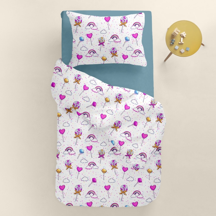 Підліткова постільна білизна з простирадлом на резинці LOLLIPOPS CS10