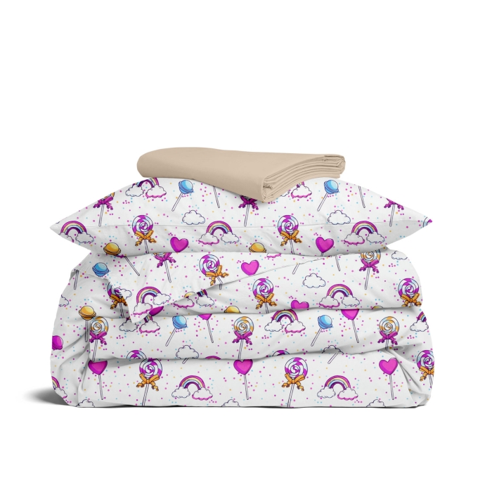 Підліткова постільна білизна з простирадлом на резинці LOLLIPOPS CS9