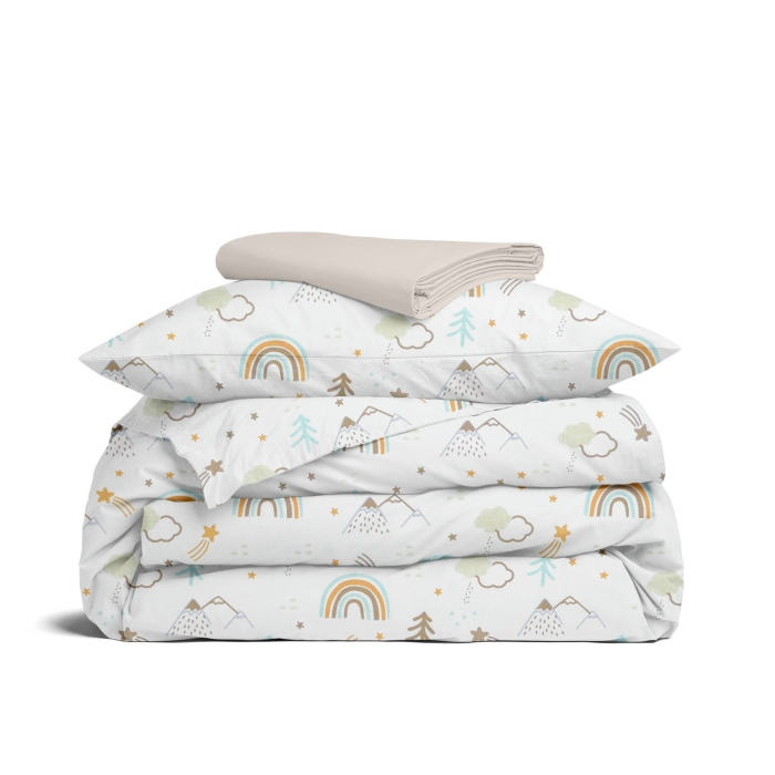 Schnellsuche , гори, хмара, хмаринки, зірки, веселка, Бежевий, Природа, Ранфорс, 160х220 см, Підліткова постіль з простирадлом на резинці MOUNTAINS