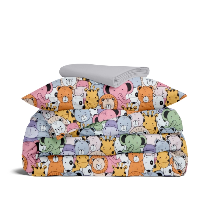 Підліткова постільна білизна з простирадлом на резинці SAFARI ANIMALS CS10