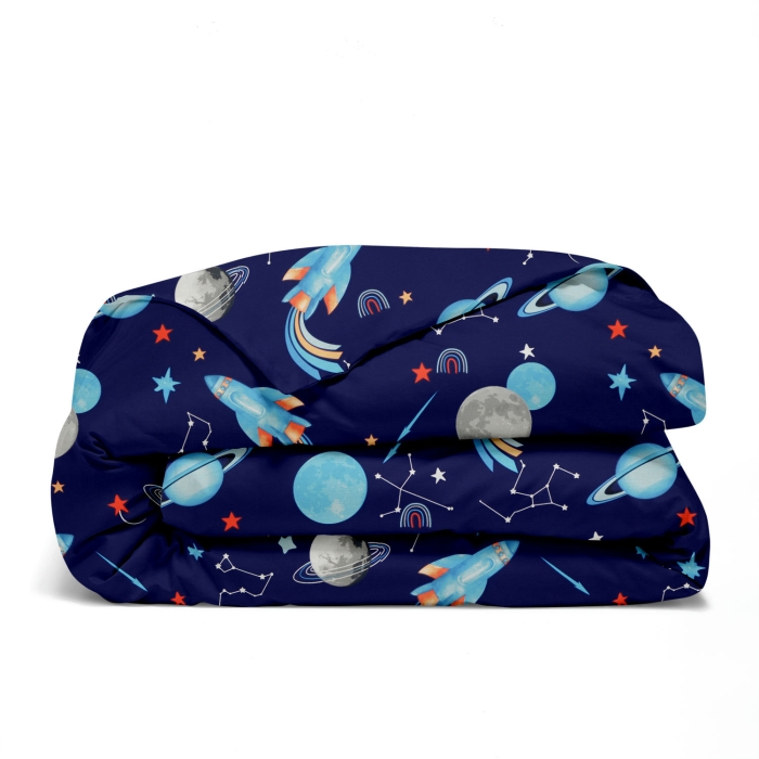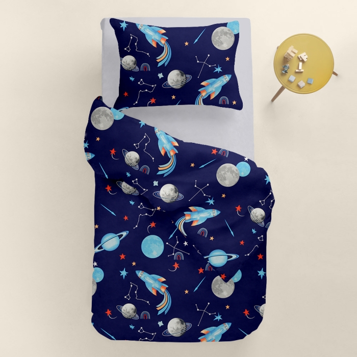 Schnellsuche , , Синій, Космос, Ранфорс, 145х210 см, Підліткова постіль з простирадлом на резинці SPACE