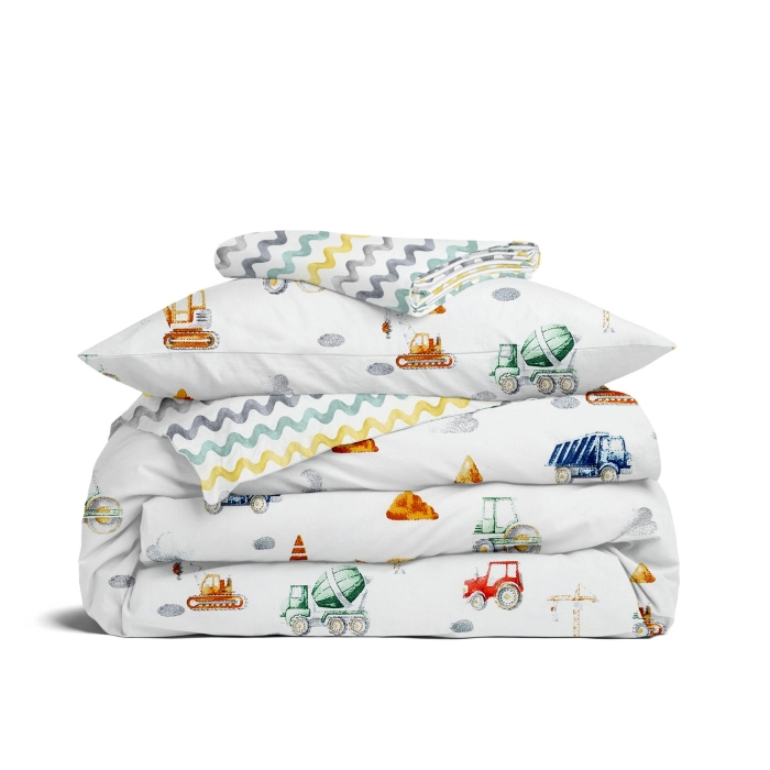 Schnellsuche , машина, машини, будівництво, будівельні машини, камаз, трактор, М'ятний, Автомобіль, Ранфорс, 155х215 см, Підліткова постіль з простирадлом на резинці TECHNO CARS