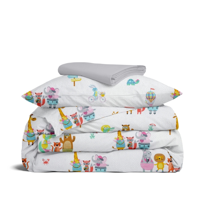 Підліткова постільна білизна з простирадлом на резинці ZOO ANIMALS CS1