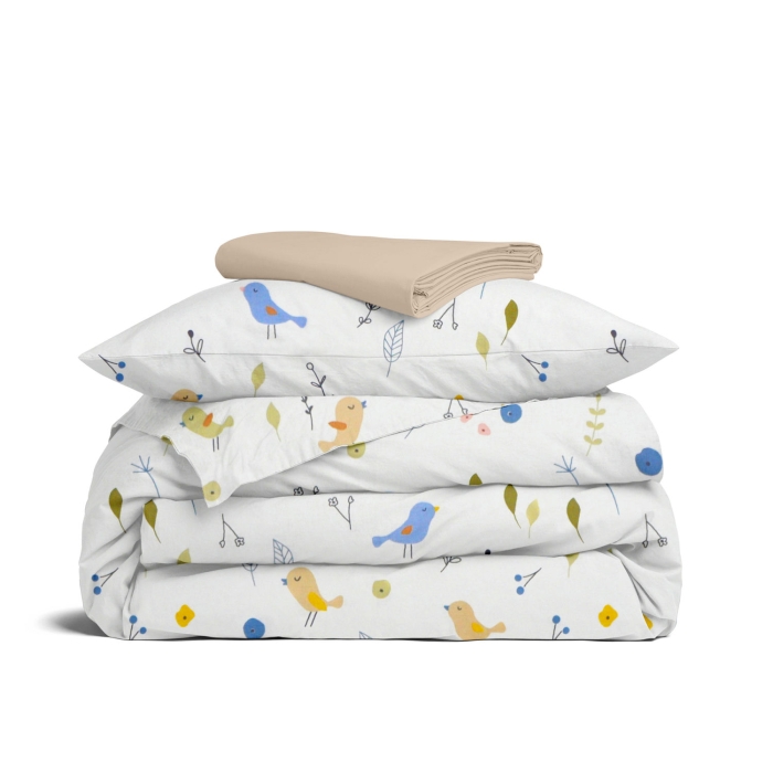 Підліткова постільна білизна з простирадлом на резинці GOLDEN SONGBIRDS CS1