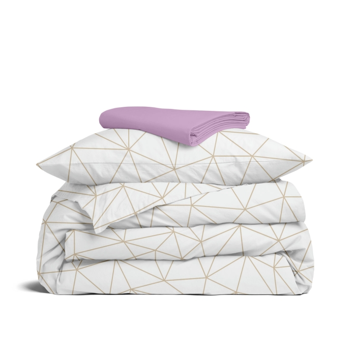 Schnellsuche , , Бежевий, Геометрія, Ранфорс, 160х220 см, Підліткова постільна білизна з простирадлом на резинці NATURAL LINES