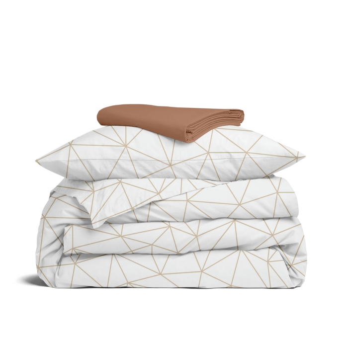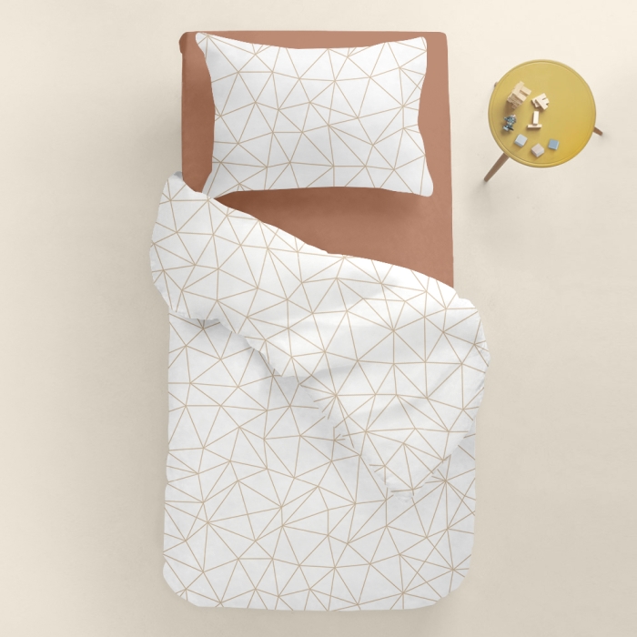 Schnellsuche , , Бежевий, Геометрія, Ранфорс, 160х220 см, Підліткова постільна білизна з простирадлом на резинці NATURAL LINES