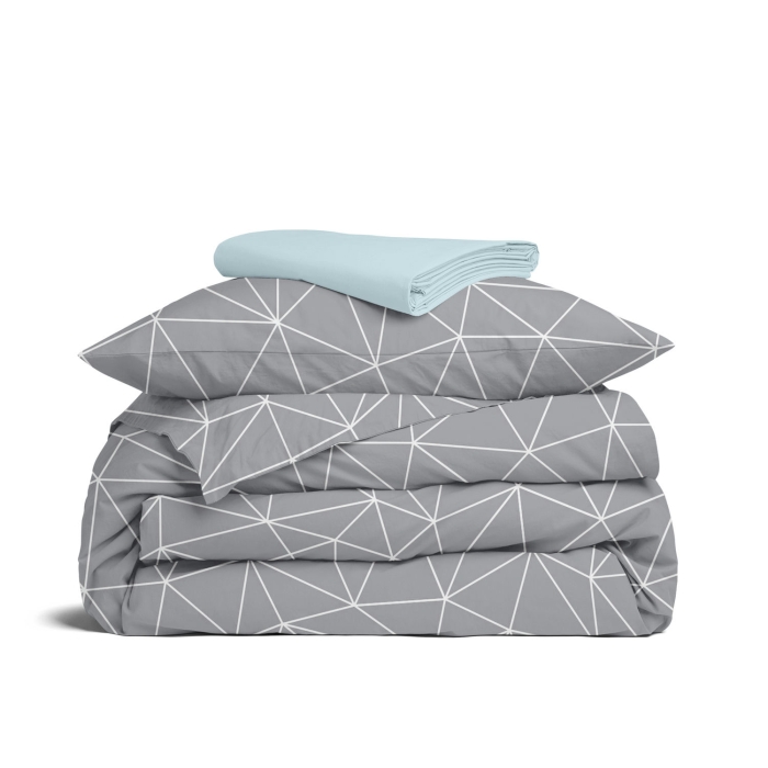 Schnellsuche , , Сірий, Геометрія, Ранфорс, 160х220 см, Підліткова постільна білизна з простирадлом на резинці STONE LINES