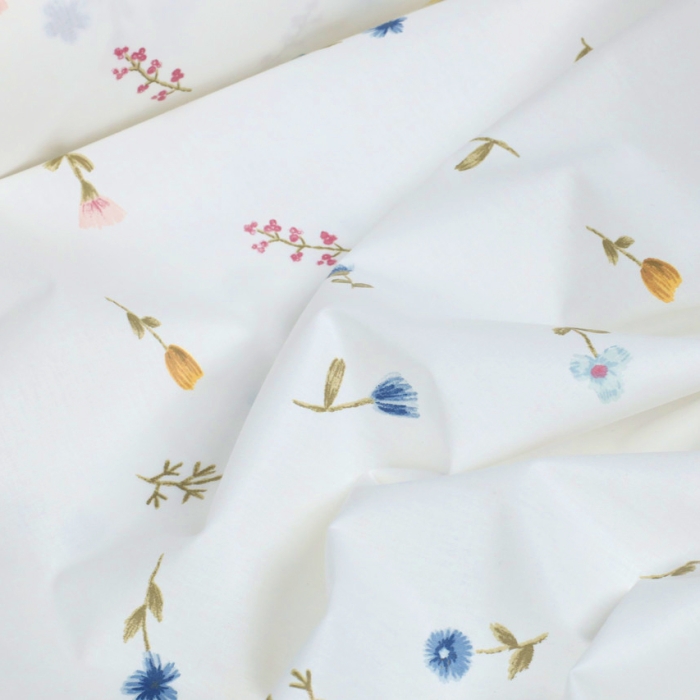 Schnellsuche , , Блакитний, Квіти, Ранфорс, 160х220 см, Підліткова постільна білизна з простирадлом на резинці WILDFLOWER DREAMS