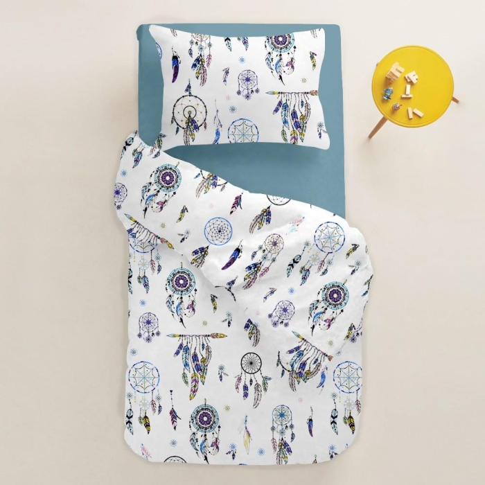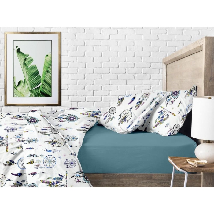 Підліткова постільна білизна з простирадлом на резинці BLUE DREAMCATCHER
