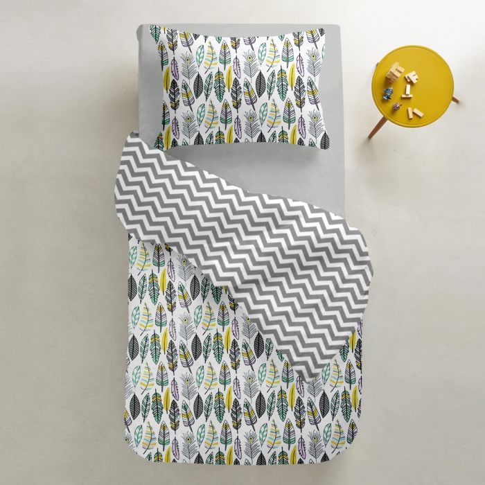 Підліткова постільна білизна з простирадлом на резинці GREY FEATHER