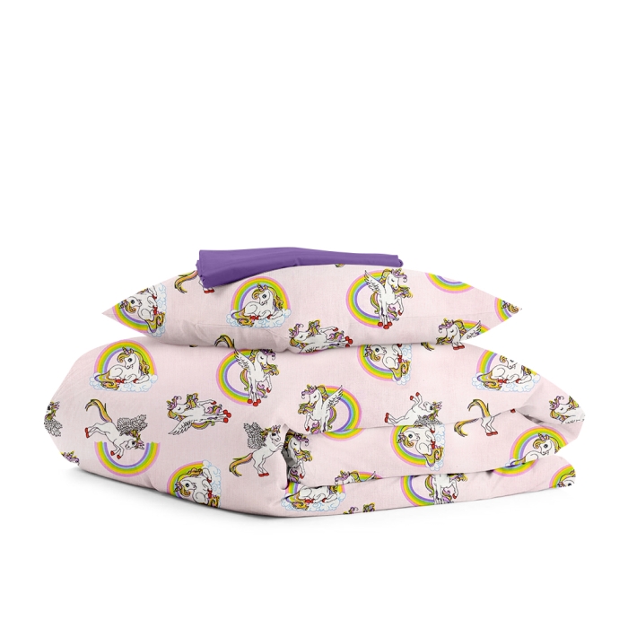 Підліткова постільна білизна з простирадлом на резинці RAINBOW UNICORN CS2