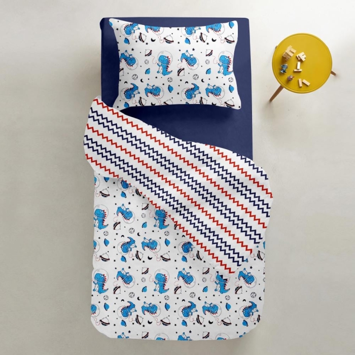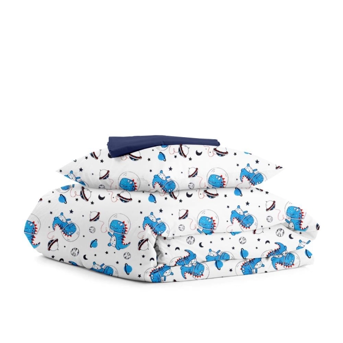 Підліткова постільна білизна з простирадлом на резинці SPACE DINO CS1