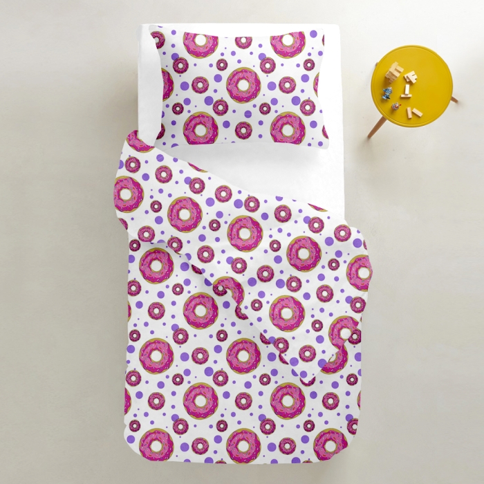 Підліткова постільна білизна з простирадлом на резинці SWEET DONUT WHITE