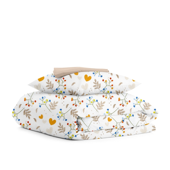 Постільна білизна дитяча полуторна COSAS виготовлена з 100% органічної бавовни, м'яка, приємна на дотик та безпечна для чутливої дитячої шкіри.