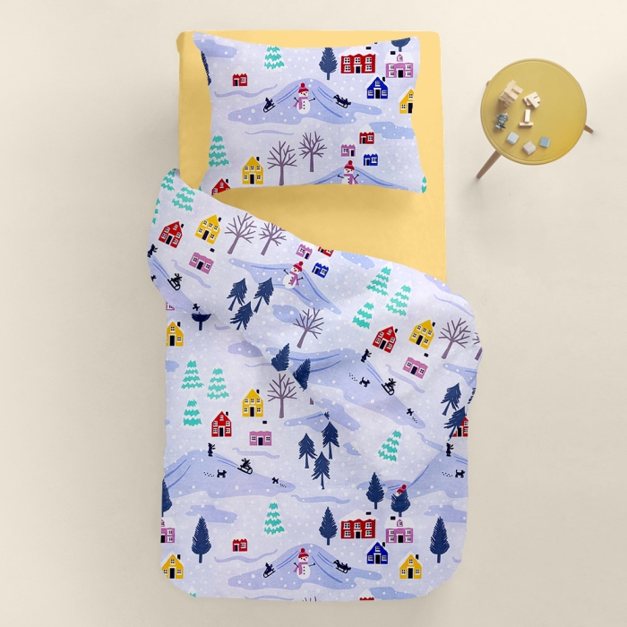 Підліткова постільна білизна фланель з простирадлом на резинці SNOWMAN