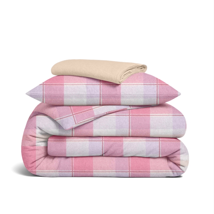 Підліткова постільна білизна фланель з простирадлом на резинці AMETHYST TARTAN