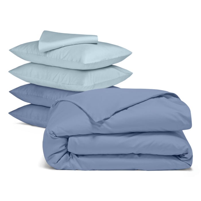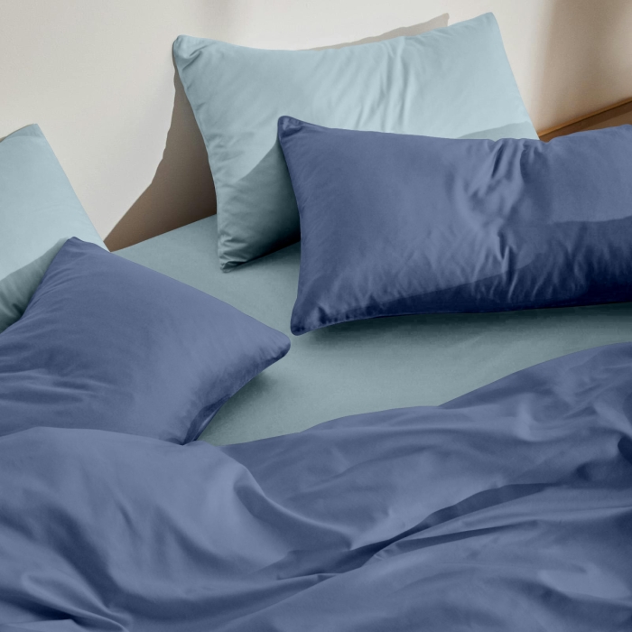 Schnellsuche , небесний, блакитний, небесно-блакитний, Небесний, , Ранфорс, 200х220 см, Євро постіль з простирадлом на резинці CLOUD