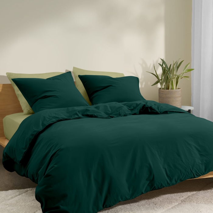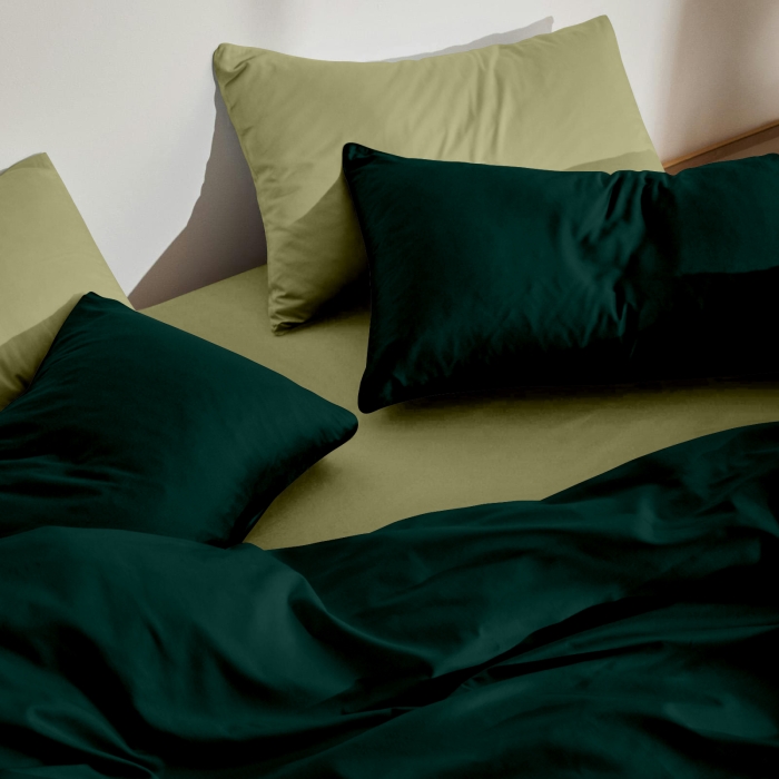 Schnellsuche , зелений, темно-зелений, Оливка, , Ранфорс, 200х220 см, Євро постіль з простирадлом на резинці PINE