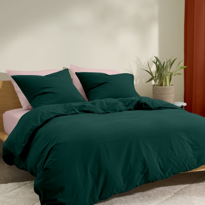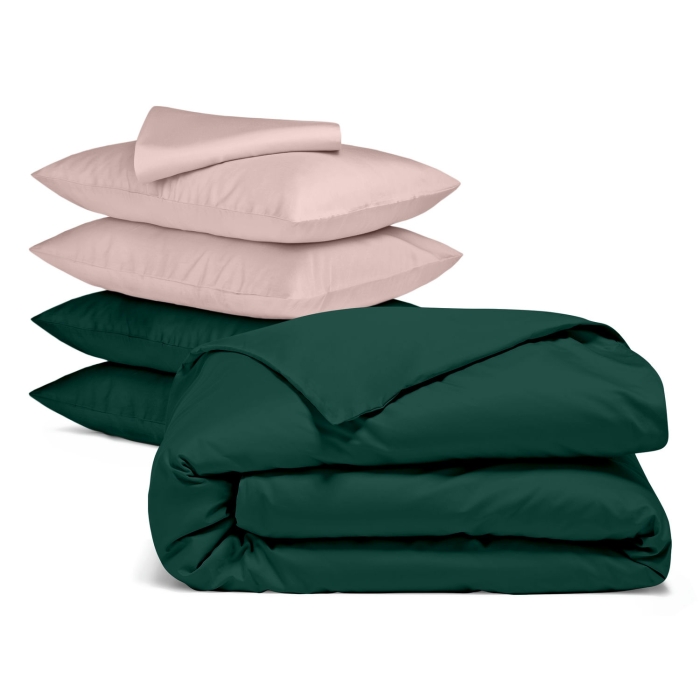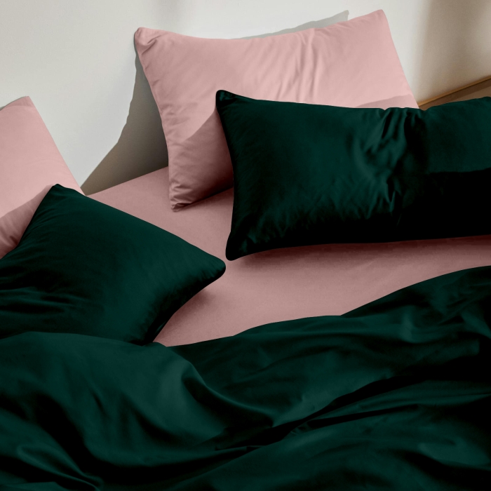 Schnellsuche , зелений, темно-зелений, Рожевий, , Ранфорс, 200х220 см, Євро постіль з простирадлом на резинці PINE
