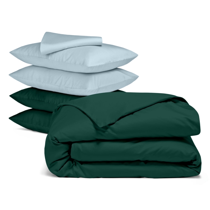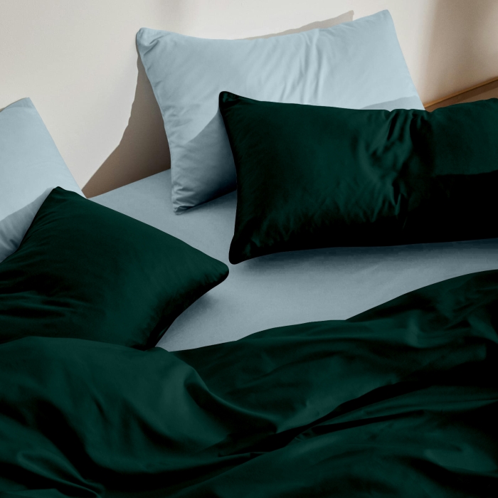 Schnellsuche , зелений, темно-зелений, Блакитний, , Ранфорс, 200х220 см, Євро постіль з простирадлом на резинці PINE