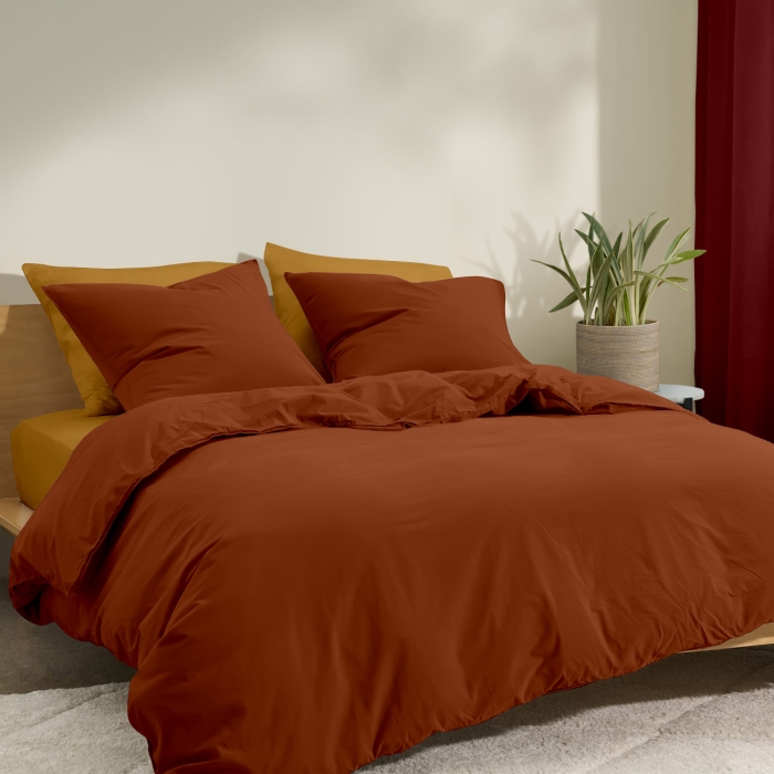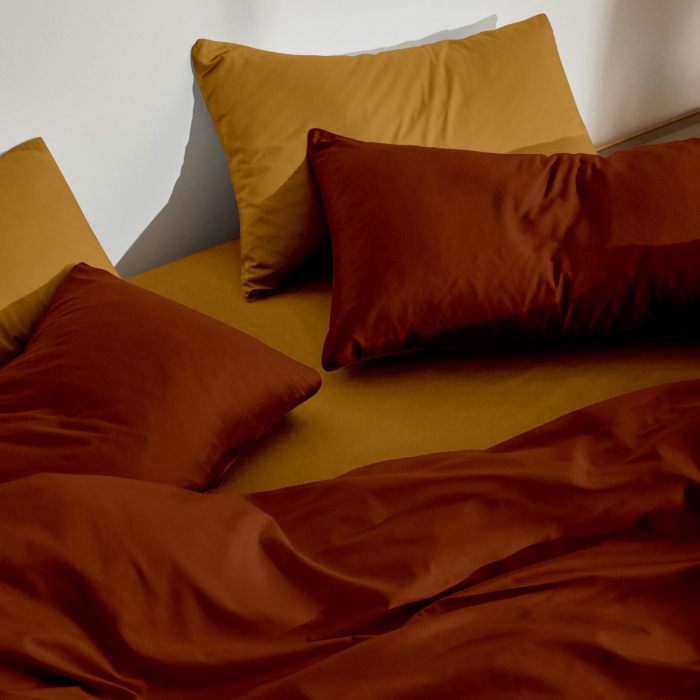 Schnellsuche , шоколад, теракот, Кориця, , Ранфорс, 200х220 см, Євро постіль з простирадлом на резинці СINNAMON