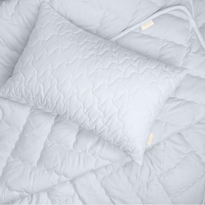 Завдяки спеціальному високосиліконізованому мікроволокну та стьобаному чохлу подушка COSAS легко відновлює і зберігає свою форму при тривалій експлуатації і пранні.
