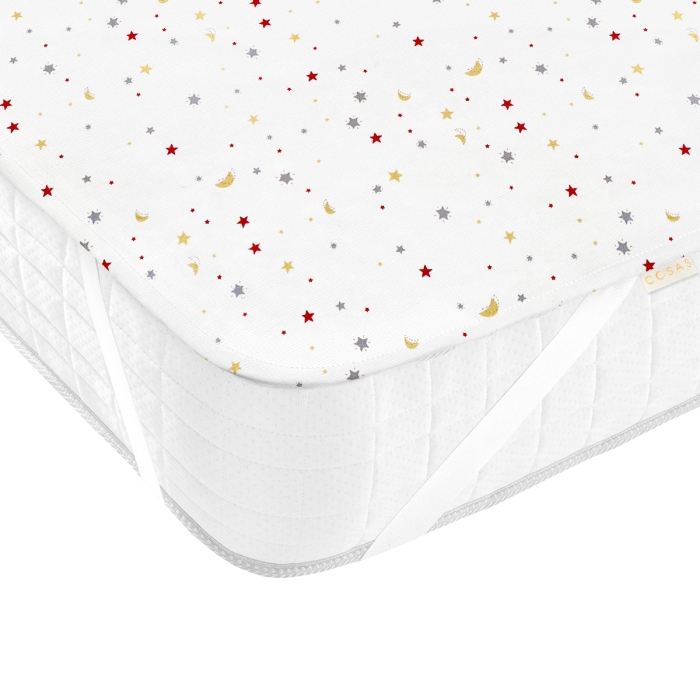 Водонепроникний наматрасник COSAS незамінний під час денних ігор або в ліжечку під час сну. Екологічний матеріал і фіксатори на резинці відмінно захищають матрац і диван від будь-яких видів забруднень, залишаючись сухим в самих непередбачених випадках.