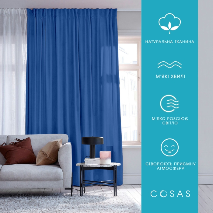 Широкий вибір кольорів та стилів штор COSAS дозволить вам підібрати ідеальний варіант для вашого інтер'єру.