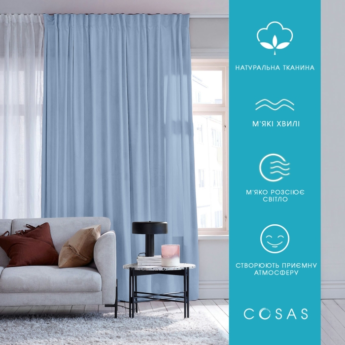 • Чистота та краса: на відміну від синтетичних штор, штори COSAS не збирають пил, роблячи їх ідеальним вибором для людей з алергією та тих, хто піклується про чистоту свого дому.