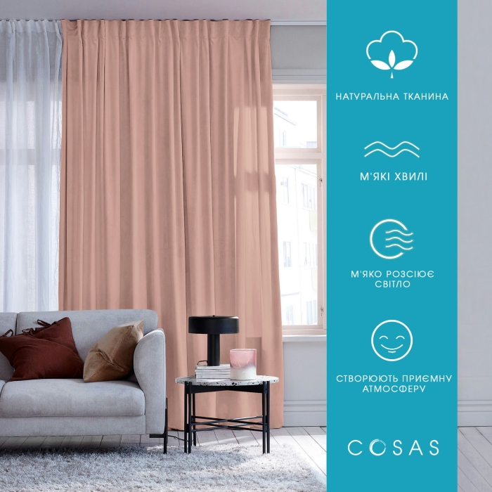 • Чистота та краса: на відміну від синтетичних штор, штори COSAS не збирають пил, роблячи їх ідеальним вибором для людей з алергією та тих, хто піклується про чистоту свого дому.
