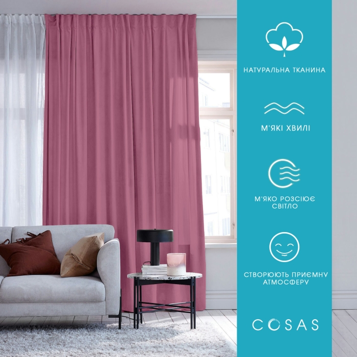 • Стильний дизайн: однотонні штори COSAS підкреслять загальний стиль будь-якої кімнати, візуально розширять вікно та збільшать висоту стелі.