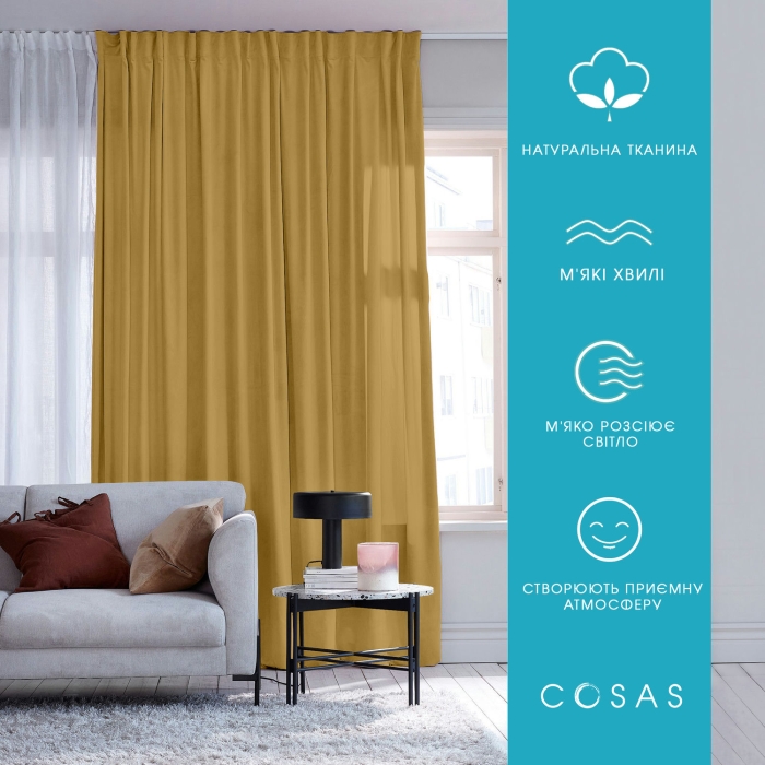 • Стильний дизайн: однотонні штори COSAS підкреслять загальний стиль будь-якої кімнати, візуально розширять вікно та збільшать висоту стелі.