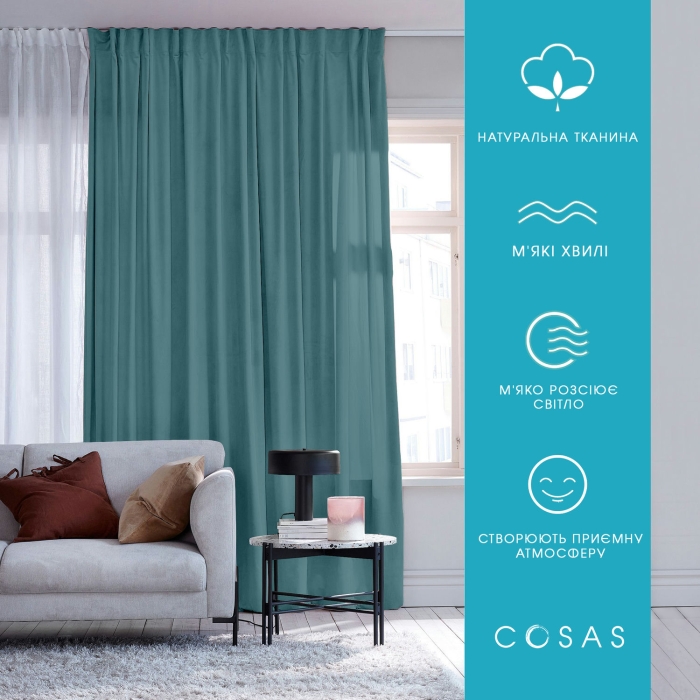 • Чистота та краса: на відміну від синтетичних штор, штори COSAS не збирають пил, роблячи їх ідеальним вибором для людей з алергією та тих, хто піклується про чистоту свого дому.