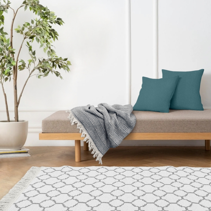За рахунок високої якості матеріалу килим не потребує особливого догляду та не втрачає насиченості відтінків навіть після багаторічного використання. Килим без ворсу COSAS не накопичує пил, його легко пилососити. Ідеальний компроміс між практичністю і комфортом.