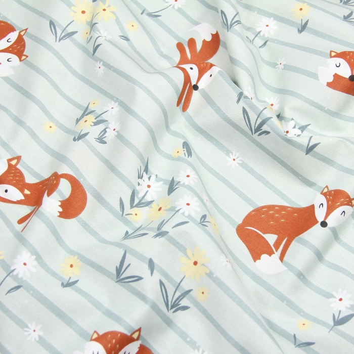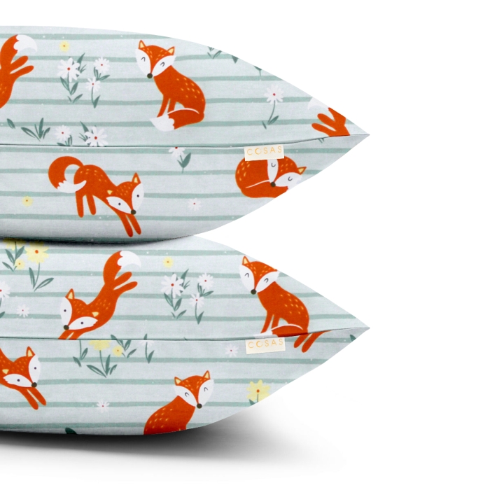 Schnellsuche , лисиця, лисичка, лисички, квіти, квіточки, природа, тварини, звірі, Бірюзовий, Тварини, Ранфорс, 40х60 см, Набір наволочок на подушку 40х60 FOX