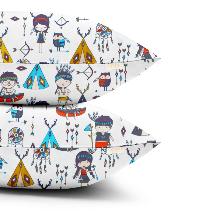 Schnellsuche , індіанці, ловець снів, вігвам, вігвами, Бірюзовий, Скандинавія, Ранфорс, 40х60 см, Набір наволочок на подушку 40х60 INDIANS