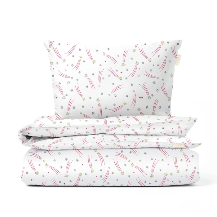 Тканина зберігає тепло, дає тілу можливість дихати. Постіль дитяча COSAS не викликає алергії, міцна і довговічна, добре переться і легко прасується.