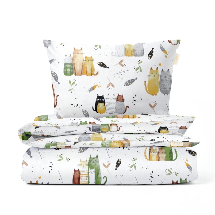 Теги: , , Зелений, Тварини, Ранфорс, 110х140 см, Дитяча постіль без простирадла FOREST CATS