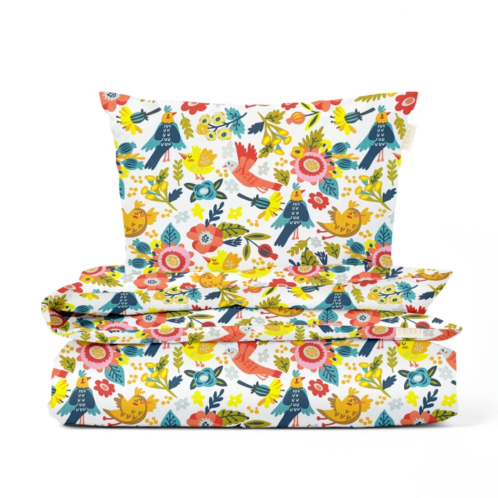 Тканина зберігає тепло, дає тілу можливість дихати. Постіль дитяча COSAS не викликає алергії, міцна і довговічна, добре переться і легко прасується.