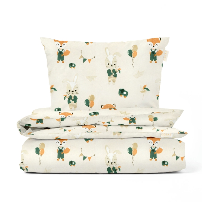 Тканина зберігає тепло, дає тілу можливість дихати. Постіль дитяча COSAS не викликає алергії, міцна і довговічна, добре переться і легко прасується.