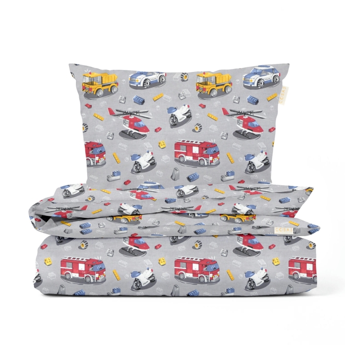 Теги: , Іграшкові машинки Лего на сірому Т, Сірий, Автомобіль, Ранфорс, 110х140 см, Дитяча постіль без простирадла LEGO CARS