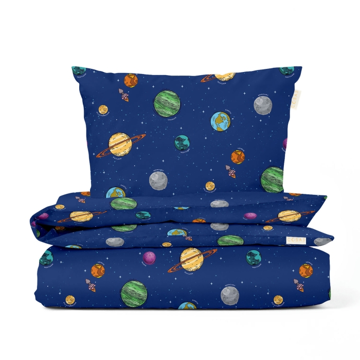 Тканина зберігає тепло, дає тілу можливість дихати. Постіль дитяча COSAS не викликає алергії, міцна і довговічна, добре переться і легко прасується.
