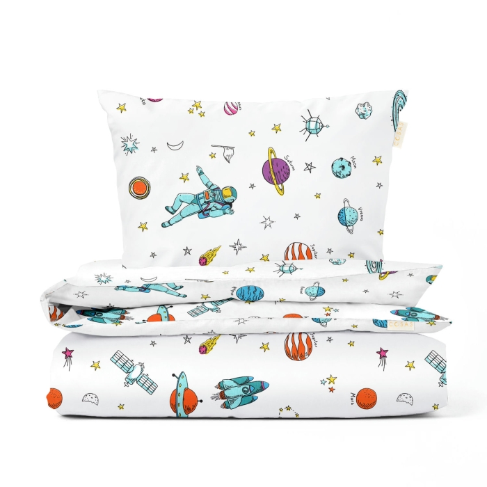 Тканина зберігає тепло, дає тілу можливість дихати. Постіль дитяча COSAS не викликає алергії, міцна і довговічна, добре переться і легко прасується.