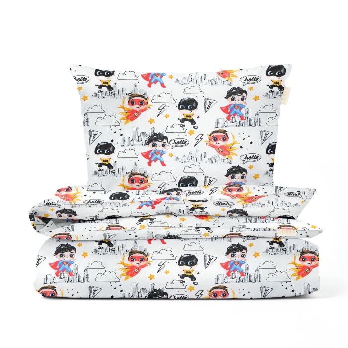 Тканина зберігає тепло, дає тілу можливість дихати. Постіль дитяча COSAS не викликає алергії, міцна і довговічна, добре переться і легко прасується.
