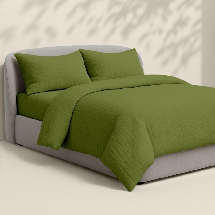 Двоспальна постільна білизна COSAS з 4-шарового мусліну — запорука здорового та комфортного сну.
