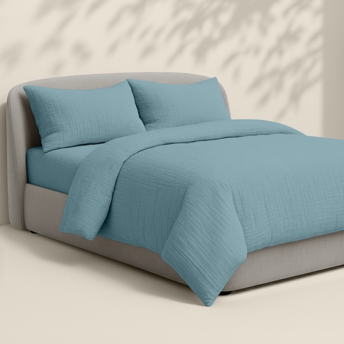 Двоспальна постільна білизна COSAS з 4-шарового мусліну — запорука здорового та комфортного сну.
