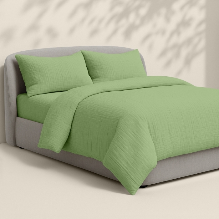 Двоспальна постільна білизна COSAS з 4-шарового мусліну — запорука здорового та комфортного сну.