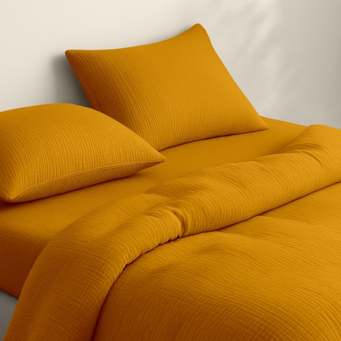 Двоспальна постільна білизна COSAS з 4-шарового мусліну — запорука здорового та комфортного сну.